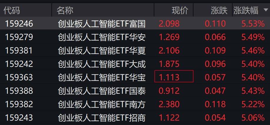 光模块+AI应用联袂上涨,创业板人工智能ETF富国(159246)盘中涨幅达6.39%