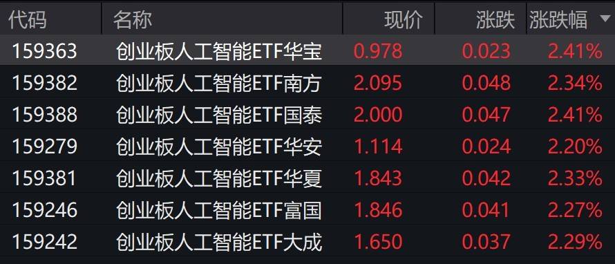 人工智能概念股走强,创业板人工智能相关ETF集体涨超2%