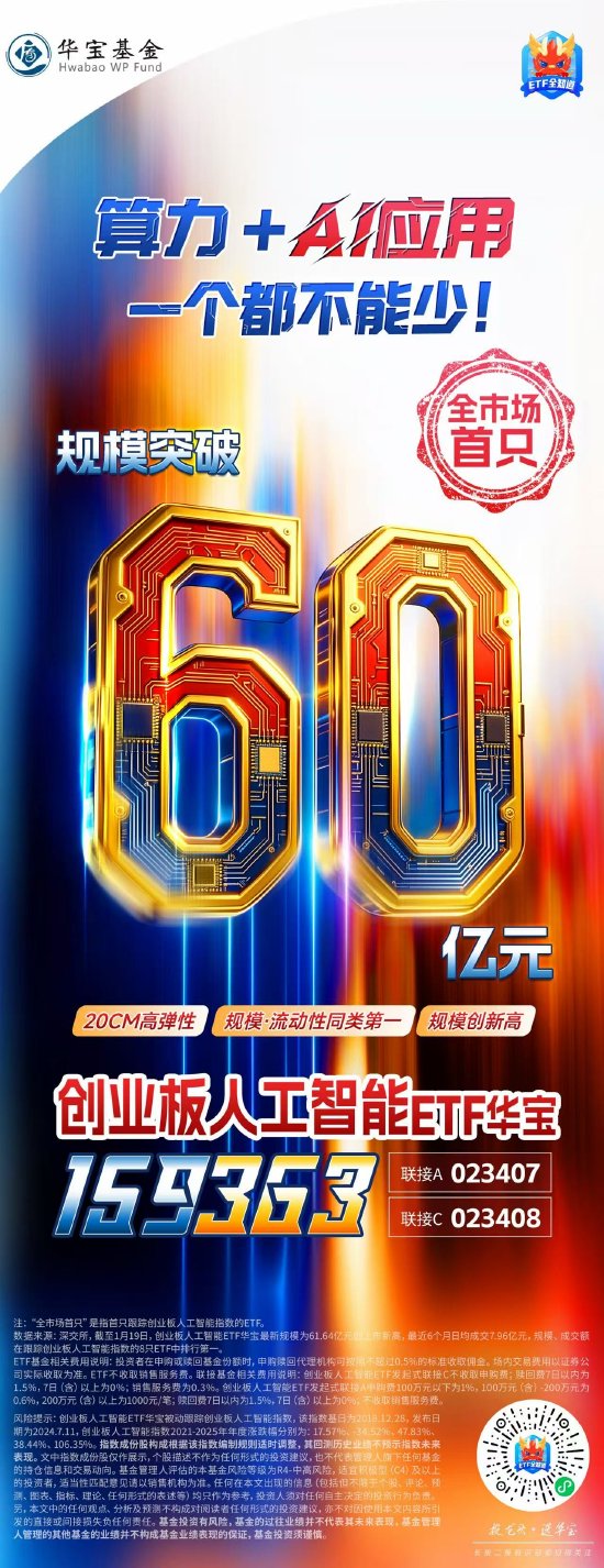 创业板人工智能ETF华宝(159363):规模超60亿元创新高!规模、流动性同类第一!