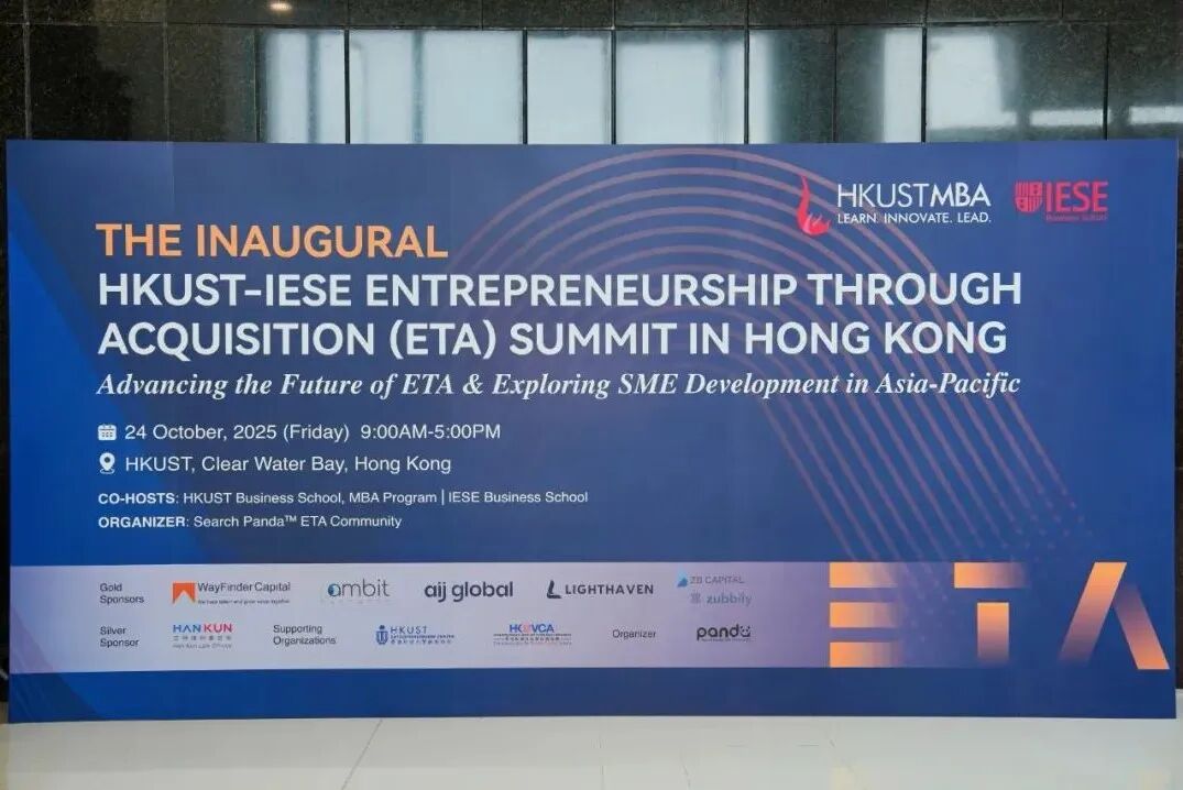 活动现场 【香港,2025年10月24日】—— 首届 HKUST–IESE 香港收购式创业 (Entrepreneurship through Acquisition, ETA) 峰会于香港科技大学清水湾校区圆满 落幕,这标志着将收购式创业模式引入香港及更广阔的亚太地区的一个重要里程碑。 本次峰会由香港科技大学商学院 MBA 项目与 IESE 商学院联合主办,Search Panda™ 收购式创业社区承办,汇聚了来自亚洲、非洲、大洋洲、欧洲和美 洲的超过200位投资人、创业者、学者和经营者,共同探讨中小型企业传承、收购及长期价值创造。 活动以香港科技大学创业中心主任 Carrie Ling 致开幕辞拉开帷幕,她向来自世界各地的参会者表示热烈欢迎。她指出,港科大是香港首个设立大学创业 中心的高等学府,一直在推动区域创业生态。Carrie Ling 表示,ETA 模式为创业者提供了通过"收购与重塑"实现创新的新路径,而香港作为东西交汇之 地,正是这一模式在亚洲落地的理想起点。 现场照。 香港创业及私募投资协会 (HKVCA) 私募基金研究所主席 K. O. Chia 指出,ETA 让创业者能通过收购成熟企业直接进 ...