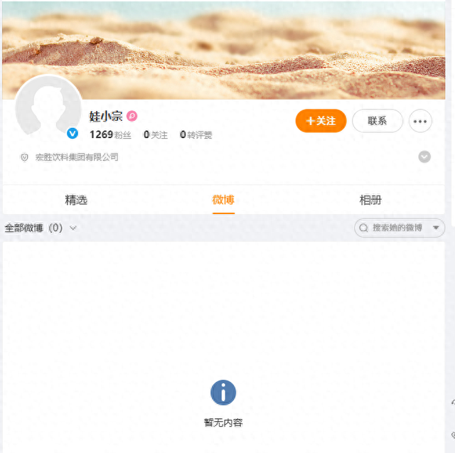 “娃小宗”已注册微博账号,认证主体为宏胜饮料集团
