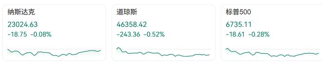 编辑 | 格蕾丝 美股三大股指集体收跌 美国股市周四收盘走弱,投资者在缺乏新的经济数据和市场催化剂的情况下选择调整仓位。标普500指 数和纳斯达克指数自历史高位回落,道琼斯工业平均指数录得一个月来最大单日跌幅。 截至收盘,道琼斯工业平均指数下跌243.36点,报46358.42点,跌幅0.52%;标普500指数下跌18.61点, 收于6735.11点,跌幅0.28%;纳斯达克综合指数下跌18.75点,报23024.63点,跌幅0.08%。 标普500指数11个板块中,原材料板块跌幅居前,必需消费品板块是唯一上涨的板块。住房与住宅建筑 板块双双下跌逾2%,因利润率及需求前景承压。 大型科技股表现分化,苹果跌1.56%,谷歌A跌1.26%,微软和特斯拉至多下跌0.7%,亚马逊、英伟达与 Meta逆势上涨1.12%至2.18%。 中概股整体承压,纳斯达克中国金龙指数下跌2.01%,小鹏汽车和小马智行跌逾5%,蔚来、百度、理想 和阿里巴巴跌幅超过4%,晶科能源涨2.3%,哔哩哔哩上涨2.9%。 财富管理公司Keator Group合伙人马修·基特尔(Matthew Keator)表示:"财报季临近,市场正观望企业 盈 ...