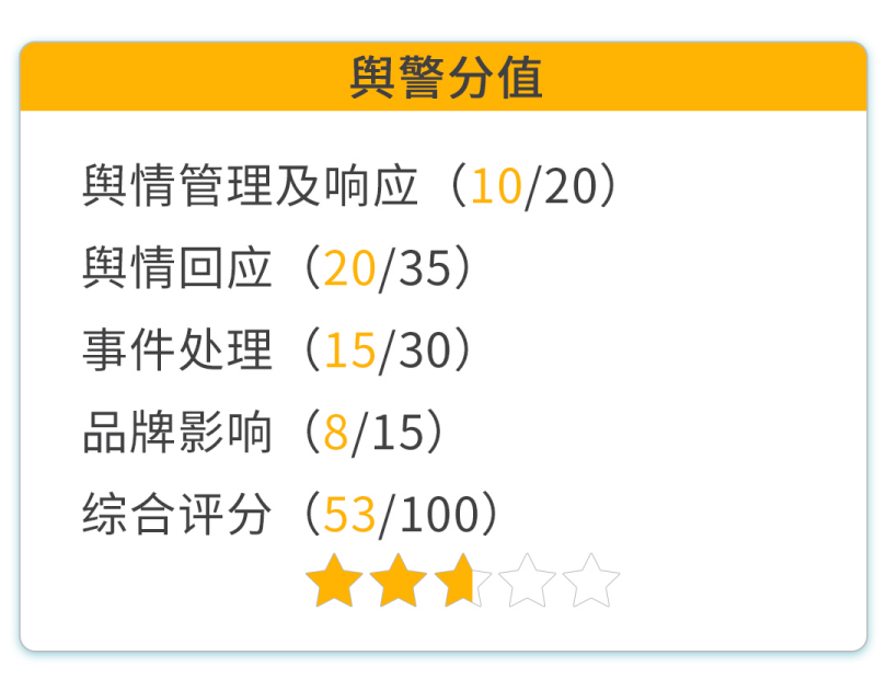 编者按:消费者的信任与喜爱,是面向大众的消费企业最宝贵的市场资源。近年来,随着消费品牌与公司经营全流 程环节的绑定程度不断加深,每一次消费产品舆情的出现、演变和定调,既考验其品牌长期建设和应急策略的有效 性,也反映了其整体企业文化与运作机制中的特征。 南方财经全媒体·21世纪经济报道消费新闻部长期关注消费类企业的舆情动态,在跟进新闻动态、传递有效信息和 反映消费者诉求的基础上,希望以每一次典型舆情案例的出现和应对为切口,观察企业在面对突发性公共事件和舆 论环境变化时的处理过程,从而以更全面的视角看待企业在品牌、市场运营管理中的得失,从而为行业做出预警和 警示。 为此,南财·21消费新闻部综合企业在舆情预警与回应中涉及的公开操作维度,形成量化评分机制——具体而言, 包含舆情管理及响应、舆情回应、事件处理、品牌影响四个一级指标和预防机制、回应直接度、信息透明度、处理 长效性等14个二级指标,按照百分制根据重要性对不同指标赋值并打分,并以《消费舆警指数》对企业的应对速 度、态度与有效度进行分析评价,为企业品牌管理与消费者的品牌认知提供参考。 21世纪经济报道记者 刘婧汐 事件回顾:12月8日晚,深圳一名消费者通过山 ...