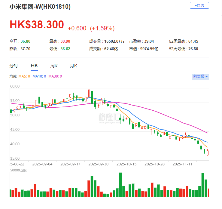 小米集团(1810.HK):3Q25汽车业务扭亏为盈 手机毛利率或受存储涨价影响