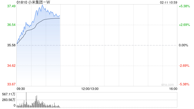 小米集团涨超5% 新一代SU7预计4月上市