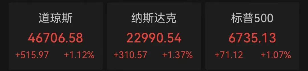 美东时间周一,随着贸易形势缓和,加上苹果股价大涨的助攻,三大指数均涨超1%,重回历史高位附近。截至收盘,道琼斯指数涨1.12%,报46,706.58 点;标普500指数涨1.07%,报6,735.13点;纳斯达克指数涨1.37%,报22,990.54点。 欧元区蓝筹股指涨1.3%,创收盘历史新高,英飞凌和德国军工股RHM涨超5%领跑。意大利银行板块收涨超2%,德国股指涨1.8%,法国股指逼近历史最高 位。 《 全球储备资产大变局:央行"买买买",若黄金突破5790美元,将超越美元地位 》华尔街见闻 大型科技股普遍上涨,英伟达跌0.32%,微软涨0.63%,苹果涨3.94%,谷歌涨1.28%,亚马逊涨1.61%,Meta涨2.13%,特斯拉涨1.85%。 热门中概股集体上涨, 纳斯达克中国金龙指数涨2.39% ,阿里巴巴涨3.84%,京东涨2.09%,拼多多涨2.40%,蔚来涨4.59%,小鹏汽车涨1.23%,理想汽车 涨0.09%,哔哩哔哩涨1.85%,百度涨1.76%,网易涨3.13%,腾讯音乐涨1.70%,小马智行涨1.76%。 现货黄金在尾盘加速上涨,日内涨幅一度扩大至3.0%,COMEX黄金期货涨幅更 ...