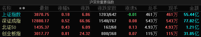 A股指数集体高开:创业板指涨0.81%,贵金属等板块涨幅居前