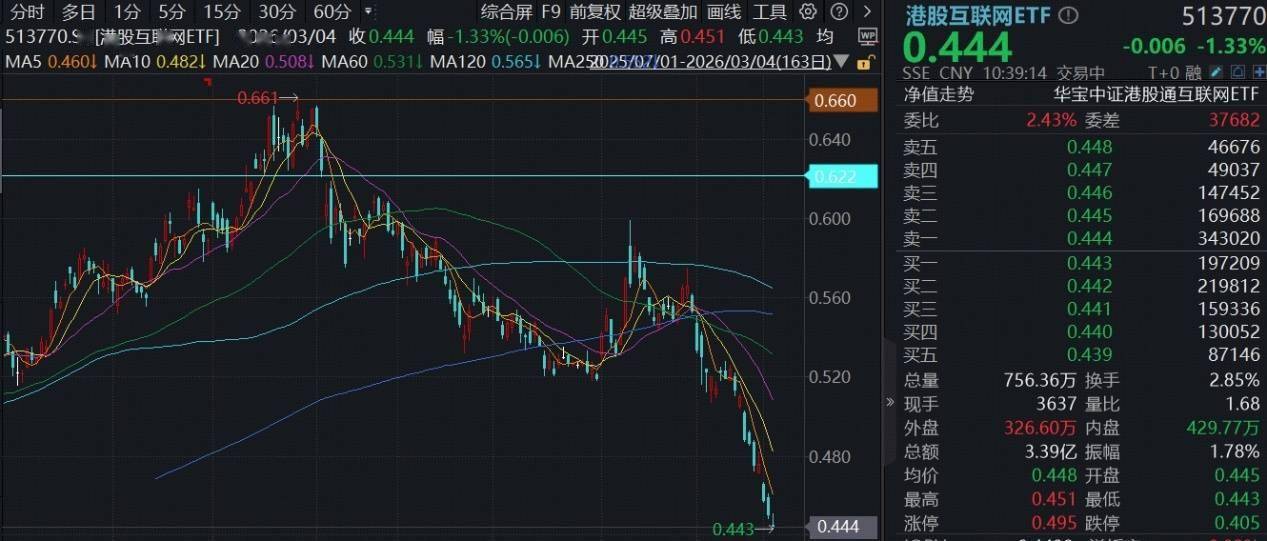 分析认为,本轮港股科技的深度调整,或主要由于三方面压力: 3月4日,港股早盘低开,恒指、恒科指双双跌逾1%,港股AI核心资产——港股互联网ETF(513770)场内价格现跌涨1.33%,下探2025年7月以来新低。互 联网龙头多数回调,阿里巴巴-W跌超3%,美团-W跌近2%,腾讯控股跟跌0.88%。 首先是外卖补贴、AI红包等巨额开支引发的企业内卷担忧。其次是AI新势力带来的冲击。随着智谱、MiniMax等AI独角兽密集发布大模型,市场对互联网巨 头的技术护城河有所忧虑。第三是美联储降息预期持续下修等因素造成的流动性层面压力。 值得注意的是,在市场回调的同时,南向资金持续加仓。截至3月3日,在今年以来南向资金交易的36个交易日中,实现净流入的交易日有27个,占比超七 成,累计净流入1818亿港元。互联网龙头获得明显增持,南向资金对腾讯控股的持仓市值超过5400亿港元,对阿里巴巴-W的持仓市值超过3200亿港元,对 小米集团-W、美团-W的持仓市值均超过1000亿港元。 与此同时,政策、流动性与资金面多重因素呈现向好信号,机构指出,关注港股通互联网调整后布局机遇。 兴业证券认为,港股通互联网跌出布局机会,可把握 ...