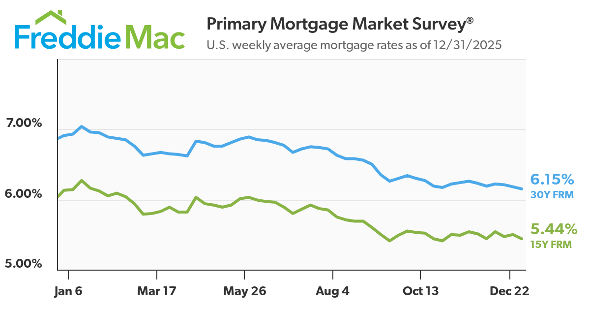 Primary Mortgage Market Survey® U.S. weekly average mortgage rates as of 12/31/2025 MCLEAN, Va., Dec. 31, 2025 (GLOBE NEWSWIRE) -- Freddie Mac (OTCQB: FMCC) today released the results of its Primary Mortgage Market Survey® (PMMS®), showing the 30-year fixed-rate mortgage (FRM) averaged 6.15%. “After starting the year close to 7%, the average 30-year fixed-rate mortgage moved to its lowest level in 2025 this week, an encouraging sign for potential homebuyers heading into the new year,” said Sam Khater, F ...