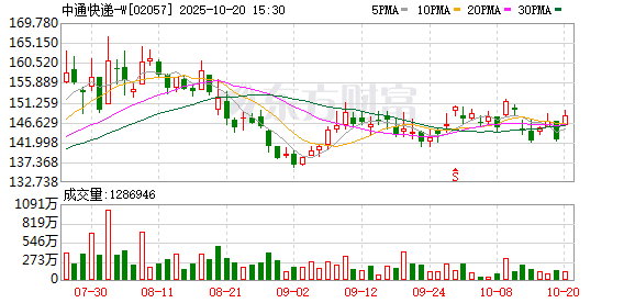 (文章来源:每日经济新闻) 每经AI快讯,10月20日,港股中通快递-W(02057.HK)盘中涨超4%,截至发稿,涨3.93%,报148.2港 元,成交额1.85亿港元。 ...