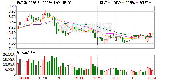 根据公司此前披露的回购报告书,本次回购股份资金总额不低于人民币8000万元且不超过人民币1.6亿 元,回购价格不超过人民币11元/股(含),回购股份用于未来实施股权激励计划或员工持股计划。 11月4日,哈尔斯(002615)发布公告称,截至2025年11月4日,公司通过股份回购专用证券账户以集中竞 价交易方式累计回购公司股份9337550股,约占公司总股本的2.00%,其中,回购成交的最高价为8.41 元/股,最低价为7.65元/股,支付的资金总额为人民币7439.67万元(不含印花税、交易佣金等交易费 用)。 市场观察人士表示,在当前市场环境下,上市公司真金白银的回购行为,既体现了对公司未来发展的信 心,也展现了对股东负责任的态度。将回购股份用于员工激励,更显示出公司注重长期发展,致力于通 过内在价值的提升来回报投资者。 (文章来源:证券时报网) 分析人士指出,将回购股份用于员工激励,则可以进一步建立、健全公司长效激励机制,吸引和留住优 秀人才,充分调动公司核心团队的积极性,有效地将股东利益、公司利益和核心团队个人利益结合在一 起,促进公司长期可持续发展。 本次回购的顺利推进,也从侧面反映出公司现金流状况的 ...