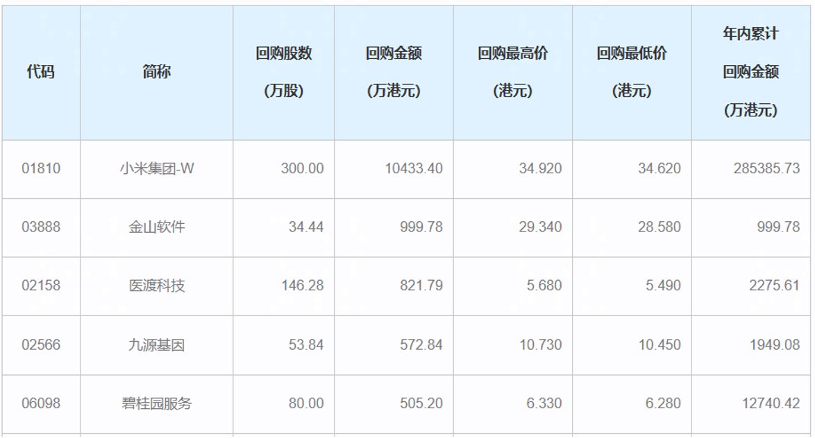结合昨日港股公司回购数据(如图所示),医渡科技当日以146.28万股、821.79万港元的回购规模,在当日港股回购榜单中位列前三(仅次于小米集团-W、 金山软件),是当天港股市场回购力度领先的企业之一。 而2月4日单日超千万港元的回购加码,不仅延续了此前的密集节奏,更将累计回购金额进一步推高。从昨日的"港股回购前三"到今日的"单日破千万",医渡 科技以持续的真金白银投入,彰显了管理层对公司内在价值的高度认可,以及对长远发展的坚定信心。 2月4日,医渡科技(02158)发布股份回购公告:公司当日以每股约5.6港元的价格回购192万股,总耗资超1000万港元,实现连续第八个交易日密集回购,单日 回购金额再创新高,累计已超3300万港元。 | 代码 | 简称 | 回购股数 | 回购金额 | 回购最高价 | 回购最低价 | 年内影 回购金 | | --- | --- | --- | --- | --- | --- | --- | | | | (万股) | (万港元) | (港元) | (港元) | (万港) | | 01810 | 小米集团-W | 300.00 | 10433.40 | 34.920 | 34.62 ...