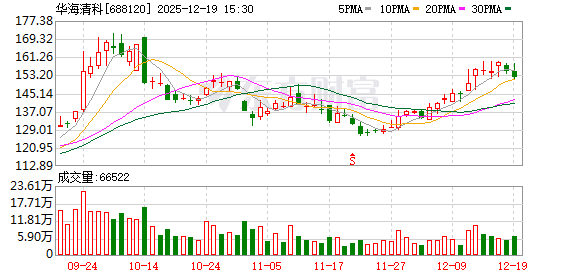 证券时报·数据宝统计显示,华海清科今日收盘价为152.10元,下跌1.70%,日换手率为1.88%,成交额 为10.23亿元,全天主力资金净流出6234.73万元,近5日该股累计下跌2.50%,近5日资金合计净流出3.92 亿元。 两融数据显示,该股最新融资余额为12.80亿元,近5日增加532.96万元,增幅为0.42%。(数据宝) 12月19日华海清科大宗交易一览 华海清科12月19日大宗交易平台出现一笔成交,成交量10.60万股,成交金额1530.96万元,大宗交易成 交价为144.43元,相对今日收盘价折价5.04%。该笔交易的买方营业部为招商证券股份有限公司北京车 公庄西路证券营业部,卖方营业部为国泰海通证券股份有限公司天津新开路证券营业部。 进一步统计,近3个月内该股累计发生30笔大宗交易,合计成交金额为3.25亿元。 | 成交量 (万 | 成交金额 | 成交价 | 相对当日收盘 | 买方营业部 | 卖方营业部 | | --- | --- | --- | --- | --- | --- | | | (万元) | 格 | 折溢价(%) | | | | 股) | | (元) | | | | | 10. ...