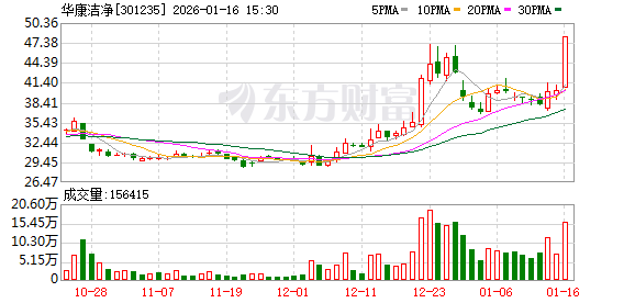 资金流向方面,今日该股主力资金净流入5155.88万元,其中,特大单净流入6194.40万元,大单资金净 流出1038.52万元。近5日主力资金净流入9429.28万元。 华康洁净今日涨停,全天换手率21.50%,成交额7.07亿元,振幅18.74%。龙虎榜数据显示,机构净买入 1832.19万元,营业部席位合计净卖出1731.27万元。 深交所公开信息显示,当日该股因日收盘价涨幅达20.00%上榜,机构专用席位净买入1832.19万元。 证券时报·数据宝统计显示,上榜的前五大买卖营业部合计成交2.63亿元,其中,买入成交额为1.32亿 元,卖出成交额为1.31亿元,合计净买入100.92万元。 具体来看,今日上榜的营业部中,共有5家机构专用席位现身,即买一、买二、买三、买五、卖一、卖 三、卖四,合计买入金额1.14亿元,卖出金额9579.64万元,合计净买入1832.19万元。 融资融券数据显示,该股最新(1月15日)两融余额为1.66亿元,其中,融资余额为1.66亿元,融券余额 为20.09万元。近5日融资余额合计增加3844.30万元,增幅为30.10%,融券余额合计增加18.52万元,增 幅1178. ...