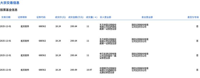 澄天伟业12月1日现2笔大宗交易 总成交金额1933.72万元 其中机构买入1730.4万元 溢价率为-12.23%