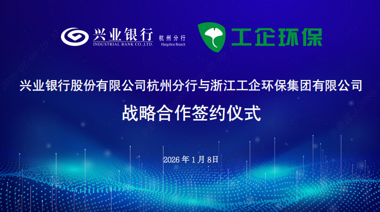 签约现场,兴业银行杭州分行行长俞裕辉进行致辞,对双方过往合作予以肯定,并对未来深化协同、共促绿 色高质量发展寄予厚望。浙江工企环保集团董事长叶标阐述了企业未来规划及境外布局等发展蓝图,期待与 兴业银行杭州分行共拓绿色发展新空间。 凛冬时节,暖意相携。1月8日,兴业银行股份有限公司杭州分行与浙江工企环保集团有限公司(以下简 称"浙江工企环保集团")签订战略合作协议。浙江工企环保集团董事长叶标,杭州分行党委书记、行长俞裕 辉,副行长赵颎出席并见证签约;浙江工企环保集团总裁许国洪与兴业银行杭州管理部党委书记、总裁宋靖 代表双方完成签约。此次银企携手,以精准金融赋能激活实体经济动能,为区域绿色低碳转型与产业高质量 发展书写崭新篇章。 浙江工企环保集团是国内危废无害化处置及资源化综合利用领域的领军企业。集团构建起"收集—运输—处 理—利用"全产业链闭环,依托近140项专利技术将危废综合资源化率提升至98%的行业领先水平,实现环境 效益与经济效益的双优双赢。目前企业已在铜镍等无机危废、新能源电池级碳酸锂、氢能、铂族金属等核心 赛道及境外投资板块完成前瞻性布局,年危废处理能力近200万吨,是国内环保产业高质量发展的重要力 ...