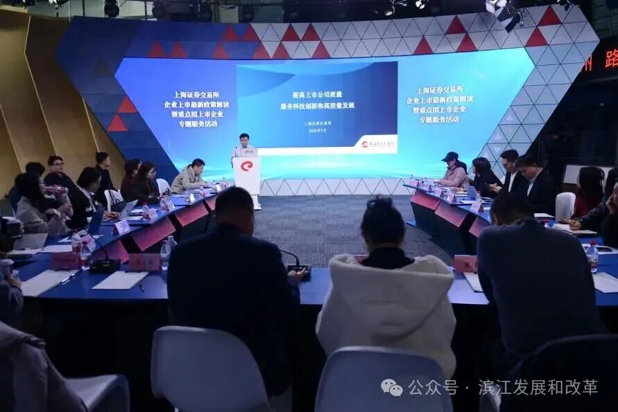 此次活动旨在通过专业指导,帮助企业破解上市筹备中的难点堵点,推动优质企业借助资本市场实现跨越式发展。下一步,我们将继续发挥 统筹协调作用,助力更多优质企业登陆资本市场,为滨江区产业升级与经济高质量发展提供坚实支撑。 互动交流环节,参会企业结合自身发展实际,逐一介绍基本经营情况、上市规划及筹备过程中遇到的具体问题,现场专家老师针对企业需求 提供专业指导建议。 为深入贯彻落实资本市场改革发展部署,助力区内企业精准把握上市政策导向,加速推进五大产业生态圈和296X先进制造业集群建设。11月 28日,由杭州高新区(滨江)发改局指导科技金融服务中心于滨江会展中心成功举办上海证券交易所企业上市最新政策解读暨重点拟上市企业专 题服务活动。杭州市委金融办、上海证券交易所的专家老师以及来自滨江区、钱塘区、桐庐县8家企业代表与会。 作为推动企业对接资本市场的重要举措,本次活动以小规模座谈交流为主要形式,聚焦拟主板、科创板上市企业核心需求,搭建起政策解读 与精准答疑的"零距离"沟通平台。活动现场,杭州市委金融办李宝军首先通报我市企业上市工作整体推进情况,介绍了全市支持企业上市的 配套政策与服务举措。上交所李达睿老师围绕科创板"1+ ...