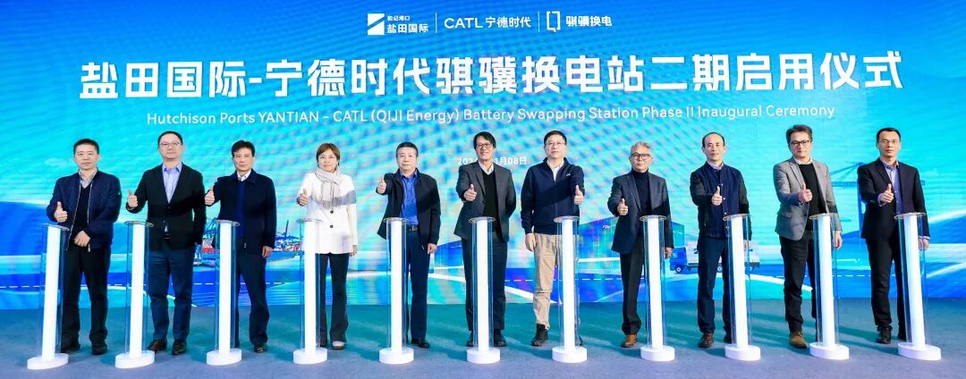1月8日,在各级政府及领导单位的支持和指导下,盐田国际集装箱码头(下称"盐田国际")与宁德时代骐骥新能源科技有限公司(下称"宁德时代骐骥") 共同举办"盐田国际-宁德时代骐骥换电站二期启用仪式"。 随着盐田骐骥换电2号、3号站正式投入使用,盐田国际实现三站齐发、规模化运作,加快建设成为全球底盘式换电站规模最大的港口之一,标志着深圳港 口在推动港口物流绿色低碳转型、培育港口新质生产力方面迈出重要一步。深圳市发展和改革委员会、深圳市交通运输局、盐田区相关领导、深圳市标准 技术研究院、深圳新型储能产业协会、盐田国际、宁德时代骐骥管理层及相关行业专家、合作企业代表约100人出席了启用仪式。 盐田国际与宁德时代骐骥的合作,是港口运输领域的底盘式换电模式从示范探索走向规模化应用的重要实践。2024年11月,全球首座港内底盘式重卡换电 站率先在盐田港区内启用,首批投放近百辆底盘式换电重卡,通过换电模式进行电池更换,将传统充电所需的1个多小时,大幅压缩至单次换电约5分钟, 有效破解港内新能源重卡在续航与充电效率方面的关键难题。项目投运以来,已实现显著的环保效益,累计减少直接二氧化碳排放约5,000吨,为改善港 口及周边区域空 ...