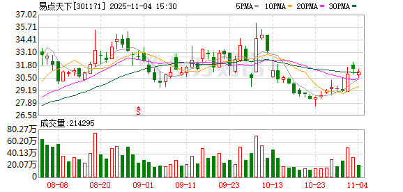 两融数据显示,该股最新融资余额为8.63亿元,近5日增加5546.84万元,增幅为6.87%。 据天眼查APP显示,易点天下网络科技股份有限公司成立于2005年04月06日,注册资本47188.5905万人 民币。(数据宝) 11月4日易点天下大宗交易一览 | 成交量 | 成交金 | 成交价 | 相对当日收 | | | | --- | --- | --- | --- | --- | --- | | (万 | 额(万 | 格 | 盘折溢价 | 买方营业部 | 卖方营业部 | | 股) | 元) | (元) | (%) | | | | 225.35 | 5897.32 | 26.17 | -15.74 | 中信证券(山东)有限责任 公司寿光农圣东街证券营业 | 中信证券股份有限公司天津 分公司 | | | | | | 部 | | | 51.73 | 1353.77 | 26.17 | -15.74 | 国投证券股份有限公司成都 | 中国中金财富证券有限公司 | | | | | | 龙泉驿区兴业街证券营业部 | 上海徐汇区淮海中路证券营 | | | | | | | 业部 | (文章来源:证券时报网) 易点天下11月 ...