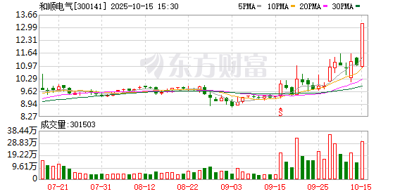 和顺电气今日涨停,全天换手率11.84%,成交额3.71亿元,振幅21.81%。龙虎榜数据显示,机构净买入 2660.30万元,营业部席位合计净买入5477.66万元。 深交所公开信息显示,当日该股因日收盘价涨幅达20.00%上榜,机构专用席位净买入2660.30万元。 证券时报·数据宝统计显示,上榜的前五大买卖营业部合计成交1.68亿元,其中,买入成交额为1.25亿 元,卖出成交额为4353.40万元,合计净买入8137.96万元。 具体来看,今日上榜的营业部中,共有5家机构专用席位现身,即买二、买四、卖一、卖二、卖三、卖 四,合计买入金额6551.74万元,卖出金额3891.44万元,合计净买入2660.30万元。 资金流向方面,今日该股主力资金净流入8865.62万元,其中,特大单净流入9646.13万元,大单资金净 流出780.51万元。近5日主力资金净流入9362.46万元。(数据宝) 和顺电气10月15日交易公开信息 | 买/卖 | 会员营业部名称 | 买入金额(万元) | 卖出金额(万元) | | --- | --- | --- | --- | | 买一 | 东方证券股份有限公司无锡梁清路证券营 ...