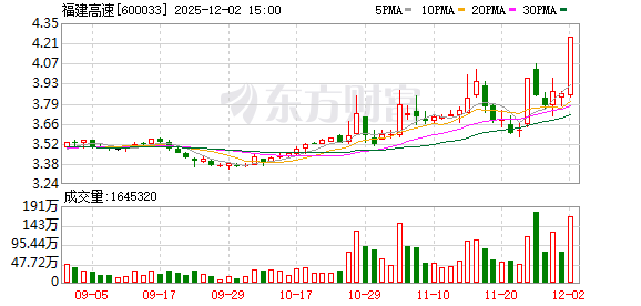 Core Viewpoint - Fujian Expressway (600033) experienced a trading halt today with a daily turnover rate of 6.00% and a transaction amount of 671 million yuan, reflecting a price fluctuation of 10.97% [2] Trading Activity - The stock was listed on the Shanghai Stock Exchange due to a daily price deviation of 10.52%, with institutional investors net selling 35.22 million yuan and the Shanghai-Hong Kong Stock Connect net selling 6.59 million yuan [2] - The top five trading departments accounted for a total transaction amount of 238 million yuan, with a net buying amount of 72.28 million yuan [2] - The main funds saw a net inflow of 173 million yuan today, with large orders contributing a net inflow of 174 million yuan, while large single funds experienced a net outflow of 1.29 million yuan [2] Financing and Margin Data - As of December 1, the latest margin balance for the stock was 354 million yuan, with a financing balance of 353 million yuan and a securities lending balance of 80.94 thousand yuan [3] - Over the past five days, the financing balance increased by 28.50 million yuan, representing an 8.78% growth, while the securities lending balance rose by 35.49 thousand yuan, marking a 78.10% increase [3] Financial Performance - According to the third-quarter report released on October 31, the company achieved an operating income of 2.298 billion yuan for the first three quarters, reflecting a year-on-year growth of 1.30%, and a net profit of 822 million yuan, which is a 3.58% increase year-on-year [3]