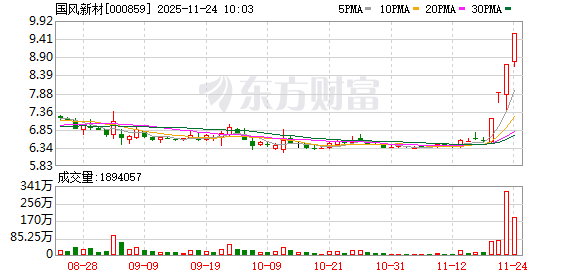 公司发布的三季报数据显示,前三季公司共实现营业收入15.92亿元,同比下降3.53%,实现净利 润-6560.43万元,同比增长14.23%,基本每股收益为-0.0700元。 据天眼查APP显示,安徽国风新材料股份有限公司成立于1998年09月23日,注册资本89597.6271万人民 币。(数据宝) 近日该股表现 | 日期 | 当日涨跌幅(%) | 换手率(%) | 主力资金净流入(万元) | | --- | --- | --- | --- | | 2025.11.21 | 10.01 | 35.34 | 10198.88 | | 2025.11.20 | 10.04 | 8.18 | 6102.56 | | 2025.11.19 | 9.97 | 7.67 | 17735.40 | | 2025.11.18 | -0.76 | 1.93 | -210.76 | | 2025.11.17 | 0.92 | 2.16 | -61.49 | | 2025.11.14 | -0.76 | 1.53 | -525.52 | | 2025.11.13 | 3.14 | 3.09 | 1875.67 | | 2025. ...