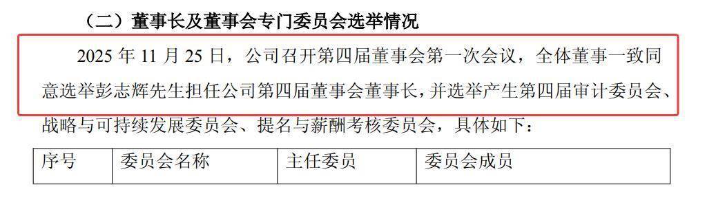 | 委员会名称 | 主任委员 | 委员会成员 | | --- | --- | --- | | 序号 | | | 瑞财经 赵盼盼 11月25日,上纬新材发布关于完成董事会换届选举及聘任高级管理人员的公告。 根据公告,上纬新材召开第四届董事会第一次会议,全体董事一致同意选举彭志辉担任公司第四届董事会董事长,任期至第四届董事会任期届满 之日止。 彭志辉网名为"稚晖君",曾被称为"华为天才少年",也是B站的顶流科技UP主。目前,他在B站拥有283.7万粉丝。 上纬新材提供的资料显示,彭志辉于1992年出生,硕士研究生学历,电子科技大学通信与信息系统专业,历任 OPPO 上海研究院算法工程师;华 为技术有限公司主任工程师;智元创新(上海)科技有限公司联合创始人、总裁、CTO。 ...