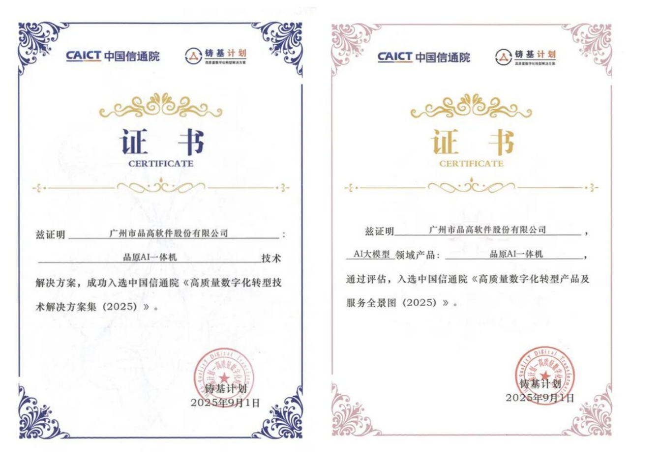 品高股份入选中国信通院2025高质量数字化转型方案集和全景图