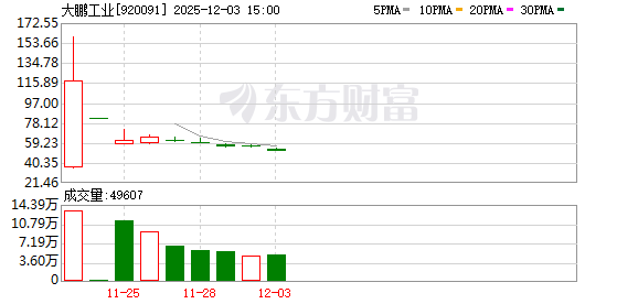 Core Points - Dapeng Industrial (920091) experienced a decline of 7.15% today, with a turnover rate of 36.50% and a trading volume of 259 million yuan, showing a fluctuation of 4.97% [2][3] - The stock was listed on the龙虎榜 due to its high turnover rate, with a net buying amount of 1.4833 million yuan from brokerage seats [3] Trading Data - The top five brokerage seats accounted for a total transaction amount of 64.3556 million yuan, with a buying amount of 32.9195 million yuan and a selling amount of 31.4362 million yuan, resulting in a net buying of 1.4833 million yuan [3] - The largest buying brokerage was Zhejiang Merchants Securities Co., Ltd. Lishui Branch, with a buying amount of 7.6336 million yuan, while the largest selling brokerage was Dongfang Caifu Securities Co., Ltd. Lhasa Tuanjie Road Second Securities Brokerage, with a selling amount of 9.2313 million yuan [3] Historical Performance - Over the past six months, Dapeng Industrial has appeared on the龙虎榜 eight times, with an average price drop of 6.07% the day after being listed and an average drop of 14.79% in the following five days [3]