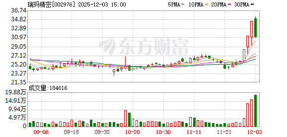 瑞玛精密跌停,龙虎榜上机构买入56.13万元,卖出1879.11万元