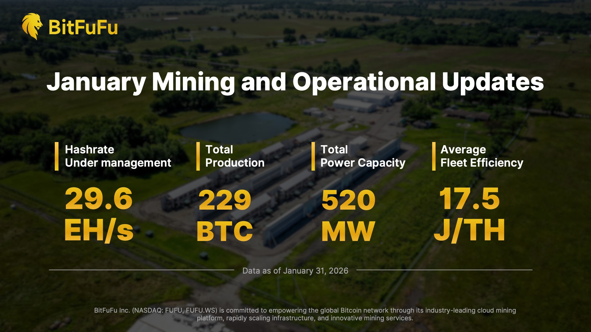 BitFuFu Announces January 2026 Bitcoin Production and Operational Updates