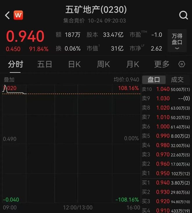 拟私有化退市,五矿地产复牌暴涨逾90%