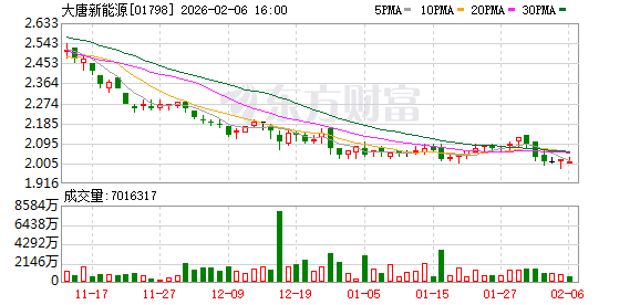 大唐新能源(01798.HK):1月完成发电量327.22万兆瓦时 同比增加6.69%