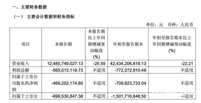 | 项目 | 本报告期 | 本报告期 比上年同 期增减变 | 年初至报告期末 | 年初至报告期末比上 年同期增减变动幅度 | | --- | --- | --- | --- | --- | | | | 动幅度 | | (%) | | | | (%) | | | | 营业收入 | 12,485,749,027.13 | -25.55 | 42,434,206,818.13 | -22.21 | | 利润总额 | -565,013,119.73 | 不适用 | -772,072,910.49 | 不适用 | | 归属于上市公 司股东的净利 | -469,252,174.80 | 不适用 | -709,823,733.04 | 不适用 | | 润 | | | | | | 归属于上市公 | -699,530,847.38 | 不适用 | -1,501,716,848.50 | 小道用 | 永辉超市表示,今年前三季度收入下滑,是因为一方面零售行业竞争激烈, 部分消费者消费习惯的改 变以及消费者对购物体验、商品品质等要求更高,公司客流、客单均出现一定程度下滑;另一方面,公 司主动进行门店优化调改,在对潜力门店进行关店改造 ...