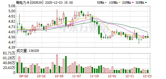 粤电力A:截至2025年三季度,公司拥有气电控股装机容量1184.7万千瓦