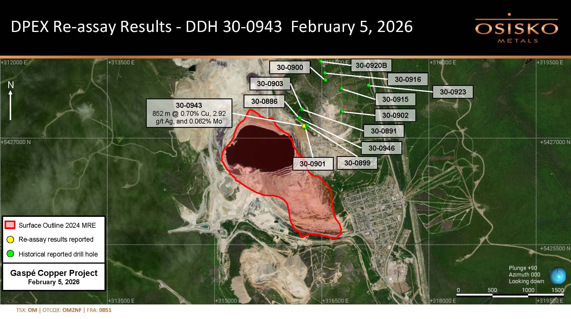 MONTREAL, Feb. 05, 2026 (GLOBE NEWSWIRE) -- Osisko Metals Incorporated (the "Company" or "Osisko") (TSX: OM; OTCQX: OMZNF; FRANKFURT: 0B51) is pleased to announce initial results from the start of the re-evaluation of the Gaspé Copper Project’s (the "GCP") Porphyry Mountain deposit, discovered in 1994 by mine-site exploration work conducted by Noranda Inc. Osisko’s Deep Porphyry Exploration Project (the "DPEX"), planned for 2026, will include a new deep drill program, re-analysis of historic drill core, and ...