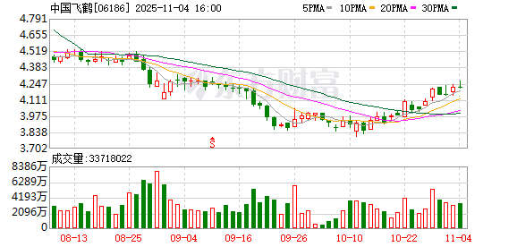中国飞鹤回购明细 | 日期 | 回购股数(万股) | 回购最高价(港元) | 回购最低价(港元) | 回购金额(万港元) | | --- | --- | --- | --- | --- | | 2025.11.04 | 1800.00 | 4.260 | 4.210 | 7610.84 | | 2025.11.03 | 463.40 | 4.220 | 4.200 | 1954.28 | | 2025.10.31 | 200.00 | 4.150 | 4.150 | 830.00 | | 2025.10.30 | 1200.00 | 4.200 | 4.170 | 5022.69 | | 2025.10.28 | 517.40 | 4.200 | 4.110 | 2162.93 | | 2025.10.27 | 588.60 | 4.090 | 4.080 | 2407.21 | | 2025.10.24 | 588.50 | 4.030 | 4.020 | 2369.77 | | 2025.07.23 | 100.00 | 4.700 | 4.700 | 470.00 | | 2025.07.09 | 10 ...