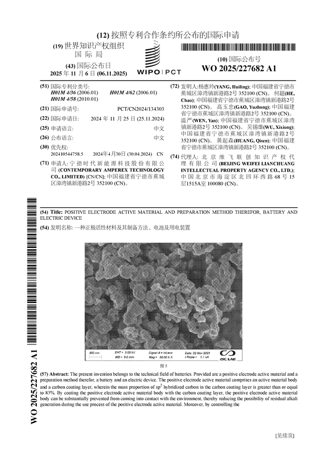 宁德时代公布国际专利申请:“一种正极活性材料及其制备方法、电池及用电装置”