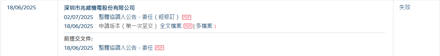 兆威机电港股IPO招股书失效