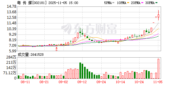 粤传媒振幅16.49%,龙虎榜上机构买入6555.13万元,卖出4875.80万元