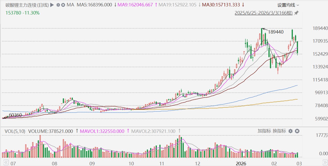 格隆汇3月3日|A股市场锂矿股集体下挫,其中,华友钻业、中矿资源跌超6%,西藏珠峰、西部矿广业跌超5%,藏格矿业、尔康制药、赣锋锂业、盐湖股 份、天齐锂业跌超4%。消息面上,碳酸锂主力合约今日大跌,盘中一度触及跌停,跌幅12.99%,报150860元/吨。 ...