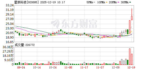 星辰科技股价创出历史新高,截至9:39,该股上涨18.73%,股价报31.44元,成交量1216.48万股,成交 金额3.48亿元,换手率13.95%,该股最新A股总市值达53.71亿元,该股A股流通市值27.41亿元。 (文章来源:证券时报网) 证券时报·数据宝统计显示,星辰科技所属的机械设备行业,目前整体涨幅为0.99%,行业内,目前股价 上涨的有480只,涨停的有中国一重、大连重工等6只。股价下跌的有94只,跌幅居前的有驰诚股份、安 达智能、精创电气等,跌幅分别为8.04%、4.17%、3.63%。 两融数据显示,该股最新(12月18日)两融余额为2862.81万元,其中,融资余额为2862.81万元,近10 日增加864.10万元,环比增长43.23%。 公司发布的三季报数据显示,前三季度公司共实现营业收入1.41亿元,同比增长40.99%,实现净利润 2676.57万元,同比增长120.94%,基本每股收益为0.1570元,加权平均净资产收益率6.84%。(数据 宝) ...