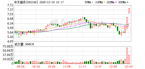 据天眼查APP显示,中天服务股份有限公司成立于2002年11月20日,注册资本32710.3864万人民币。 (数据宝) 近日该股表现 | 日期 | 当日涨跌幅(%) | 换手率(%) | 主力资金净流入(万元) | | --- | --- | --- | --- | | 2025.12.18 | 10.05 | 27.42 | 9790.78 | | 2025.12.17 | 9.98 | 8.26 | 4683.49 | | 2025.12.16 | -0.53 | 5.21 | -398.89 | | 2025.12.15 | 2.55 | 6.95 | 180.53 | | 2025.12.12 | -4.18 | 5.70 | -296.92 | | 2025.12.11 | -5.59 | 4.66 | -56.32 | | 2025.12.10 | -1.30 | 2.93 | -170.21 | | 2025.12.09 | -2.07 | 2.60 | 78.63 | | 2025.12.08 | 1.78 | 3.28 | -153.61 | | 2025.12.05 | 2.66 | 3 ...