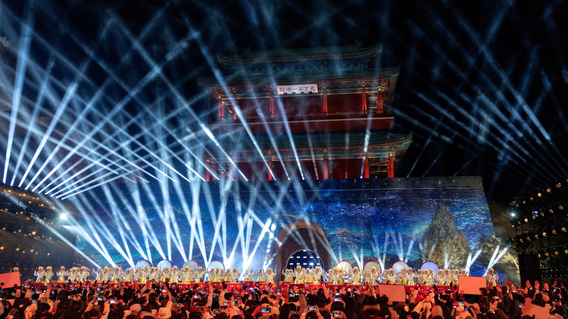 People celebrate the New Year at a ceremony at the Juyongguan Great Wall section, also known as Juyong Pass, in Beijing, China, January 1, 2026. Maxim Shemetov | ReutersAsia-Pacific markets mostly slipped Monday, as investors assessed threats from the Trump administration toward Greenland over the weekend and looked toward key economic data from China. Over the weekend, U.S. President Donald Trump and European leaders exchanged tense rhetoric over the Arctic territory, with Trump threatening tariffs on eigh ...