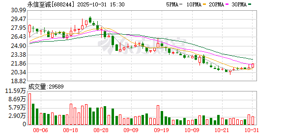 10月31日永信至诚大宗交易一览 | 成交量 | 成交金额 | 成交价格 | 相对当日收盘折 | 买方营业部 | 卖方营业部 | | --- | --- | --- | --- | --- | --- | | (万股) | (万元) | (元) | 溢价(%) | | | | 30.00 | 645.00 | 21.50 | -1.51 | 湘财证券股份有限公司上海 | 湘财证券股份有限公 | | | | | | 浦明路证券营业部 | 司北京分公司 | (文章来源:证券时报网) 证券时报·数据宝统计显示,永信至诚今日收盘价为21.83元,上涨3.36%,日换手率为1.96%,成交额为 6408.78万元,全天主力资金净流出284.62万元,近5日该股累计上涨4.85%,近5日资金合计净流出 810.42万元。 两融数据显示,该股最新融资余额为1.17亿元,近5日增加1147.06万元,增幅为10.84%。 据天眼查APP显示,永信至诚科技集团股份有限公司成立于2010年09月02日,注册资本15096.1519万人 民币。(数据宝) 永信至诚10月31日大宗交易平台出现一笔成交,成交量30.00万股,成交金额 ...