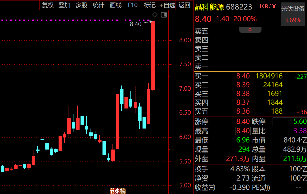 太空光伏概念午后再度走强,晶科能源20cm涨停,消息称马斯克团队近期“摸底”中国光伏产业链