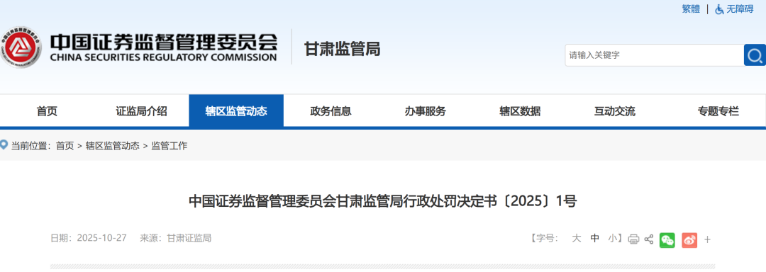中国证券监督管理委员会甘肃监管局行政处罚决定书 〔2025〕1号 原文发布日期:2025年10月27日 来源:甘肃证监局 转载自:中国证监会网站 当事人: 白银有色 集团股份有限公司(以下简称白银有色),住所:甘肃省白银市白银区友好路96号。 王普公,男,1965年11月出生,白银有色时任总经理、董事长,住址:甘肃省白银市白银区。 孙茏,男,1969年2月出生,白银有色时任董事会秘书、副总经理,住址:甘肃省白银市白银区。 吴贵毅,男,1970年9月出生,白银有色时任财务总监、副总经理,住址:甘肃省白银市白银区。 徐东阳,男,1970年2月出生,白银有色时任财务部主任、财务总监,住址:甘肃省白银市白银区。 依据《中华人民共和国证券法》(以下简称《证券法》)的有关规定,我局对白银有色信息披露违法行为进行了立案调查、审理,并依法向当事人告知了作出 行政处罚的事实、理由、依据及当事人依法享有的权利,当事人未提出陈述、申辩意见,也未要求听证。本案现已调查、审理终结。 经查明,白银有色存在以下违法事实: 2017年8月至2018年3月,白银有色陆续购买30亿元理财产品,2019年上述理财产品未按期收回,至2024年12月 ...