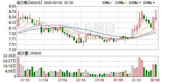(文章来源:证券日报) 证券日报网讯 2月2日,哈尔斯发布公告称,截至2026年1月31日,公司通过股份回购专用证券账户以集 中竞价交易方式累计回购公司股份9,407,150股,约占公司总股本的2.02%。 ...