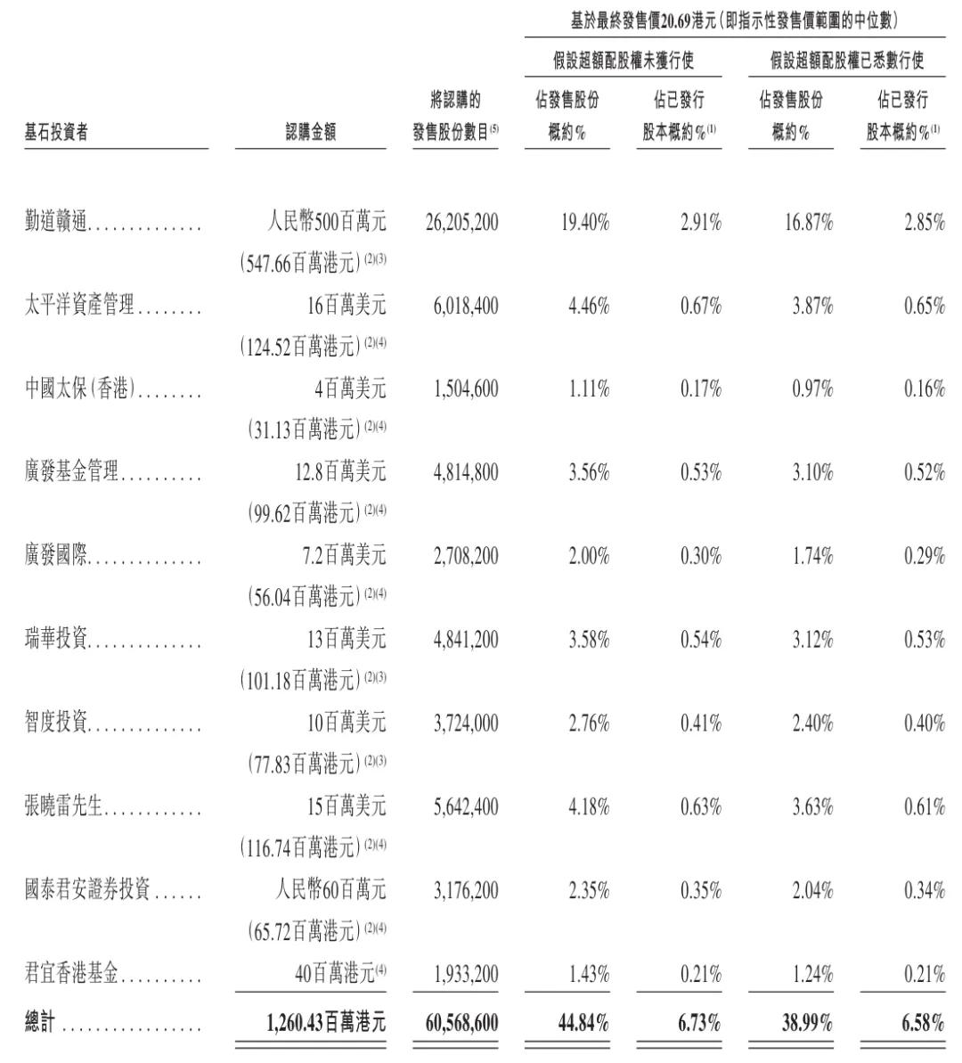 深圳市广和通无线股份有限公司(简称:"广和通",股票代码:"0638")今日在港股上市。 广和通全球发售约1.35亿股H股,发售价为21.5港元,募资总额为29亿港元;扣除发行费用9360万港元,募资净额为28.11亿港元。 广和通基石投资者分别为勤道赣通、太平洋资产管理、中国太保(香港)、广发基金管理、广发国际、瑞华投资、智度投资、张晓雷、国泰君安证券投 资、君宜香港基金,一共认购12.6亿港元。 其中,勤道赣通认购5亿元(约5.48亿港元),太平洋资产管理认购1600万美元(约1.25亿港元),中国太保(香港)认购400万美元(约3113万港元), 广发基金管理认购1280万美元(约9962万港元); 广发国际认购720万美元(约5604万港元),瑞华投资认购1300万美元(约1.01亿港元),智度投资认购1000万美元(约7783万港元),张晓雷认购1500 万美元(约1.17亿港元),国泰君安证券投资认购6000万元(约6572万港元),君宜香港基金认购4000万港元。 广和通是2017年4月在A股上市,随着此番在港股上市,广和通形成"A+H"格局。 招股书显示,广和通2022年、2023年、2024 ...