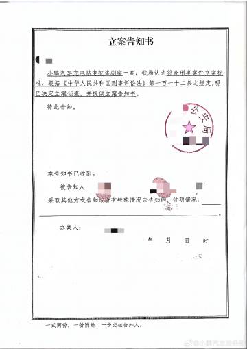 小鹏汽车法务部:已就“盗电”违法行为报案,部分案件已成功侦破
